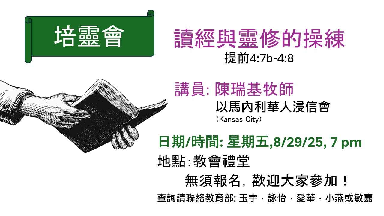 【夜盡天明】 9/6-9/8 晚上7:30 講員:張路加牧師