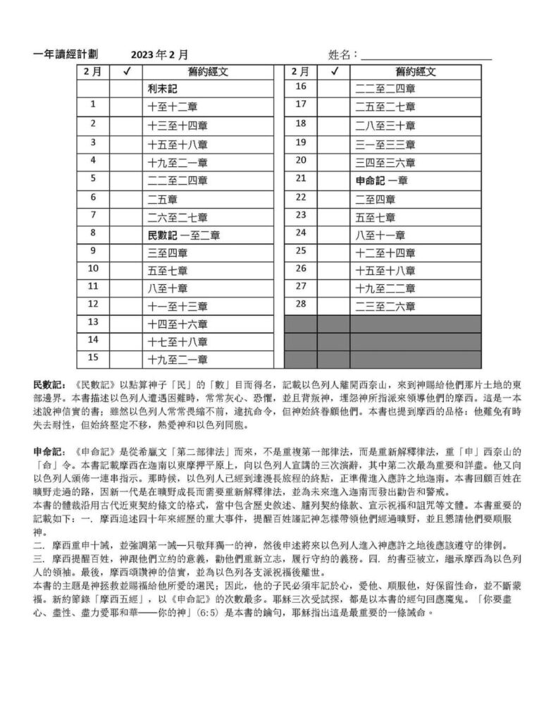 Previous Image Next Image 二三年二月讀經計劃 Have you read this post?I read it (0)Not yet (0) Please follow and like us:
